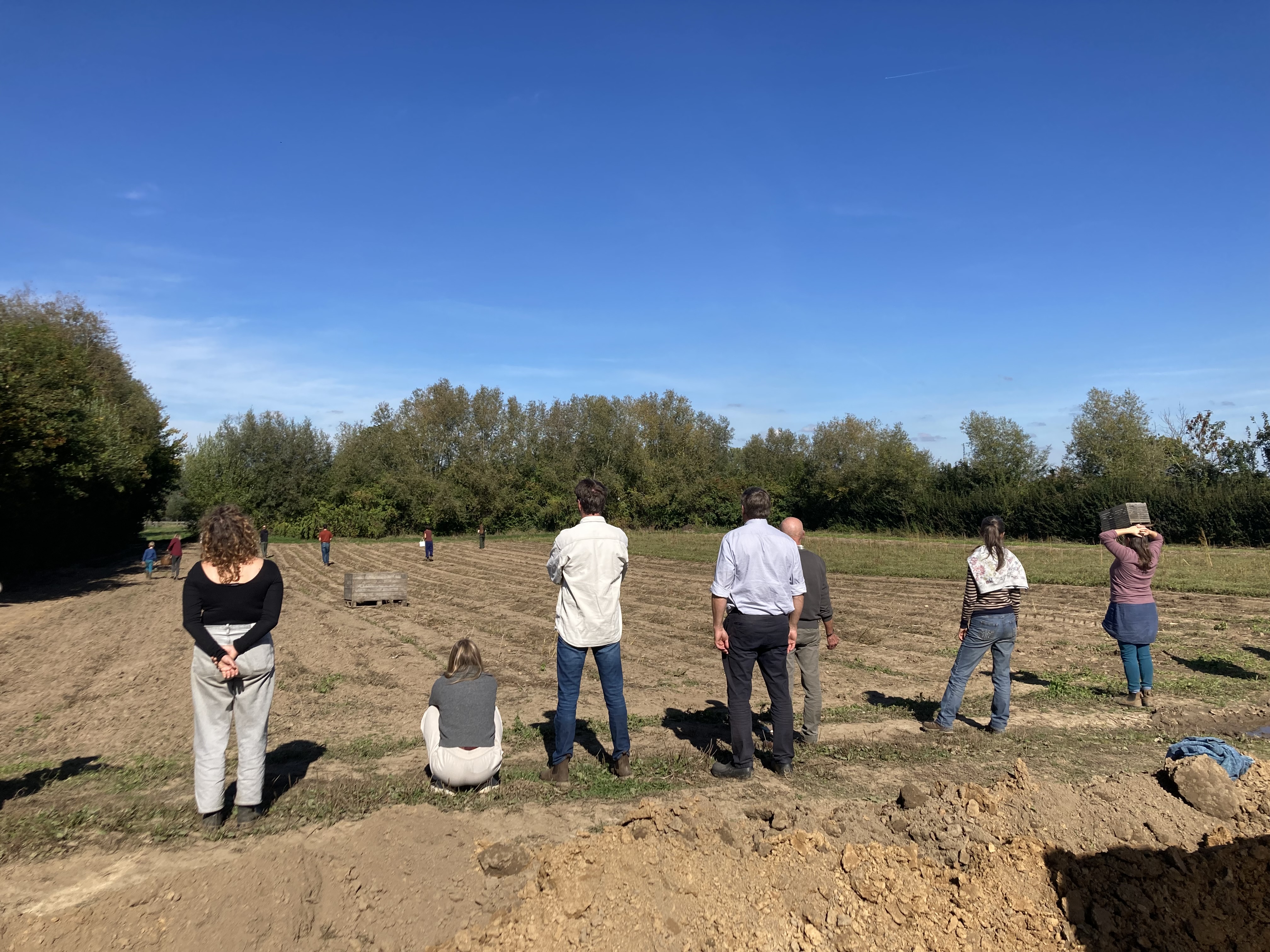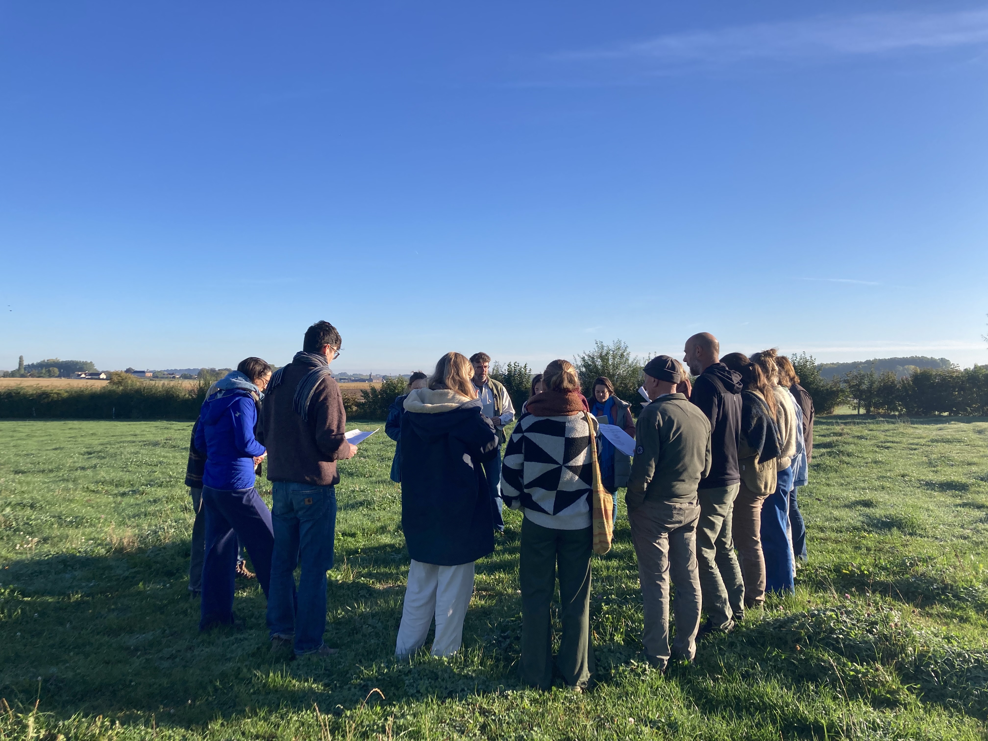 De eerste dag draait om de mens in dat ecosysteem. De zomerschool valt niet toevallig rond Sint-Michiel, eind september. Na de energie van de zomer is dit volgens Rudolf Steiner het moment waarop de aarde weer begint in te ademen. De voeding stroomt terug naar de bodem, naar de kern. Ook wij als mens volgen dit ritme en vertragen, keren naar binnen. We praten over wat het betekent om boer te zijn in deze tijd. Dan klinkt de vraag: “Waar heb je als boer vandaag moed voor nodig?” Christine Gruwez, die het gesprek begeleidt, laat onze woorden landen en geeft er vervolgens taal aan. Ze spreekt over drie vormen van moed. Zo is er de moed om iets onvoltooid te laten: te beginnen aan een veld, een boerderij, een idee, zonder te weten of het ooit ‘af’ zal zijn. De moed om je kwetsbaar te tonen: te laten zien waar je voor staat, zelfs als dat onzeker voelt. En de moed om wakker te blijven: niet alleen even, maar blijvend, ook als het moeilijk wordt.