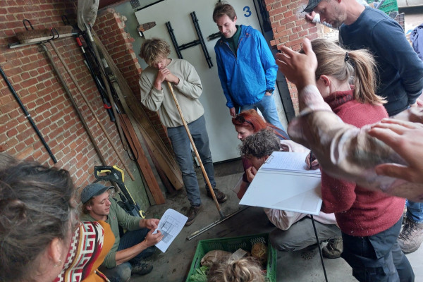 De tweedejaars van Gent gingen langs bij oud-cursiste en docente plantkunde en agro-ecologie Lien Vrijders van stageplaats Klimaatboerderij Grassroots in Vremde. Ook in Eksaarde streken ze neer, bij oud-cursiste Reina van stageplaats BES EN BLOEM.